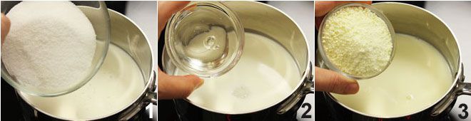 – Đầu tiên các bạn cho kem tươi (whipping cream) cùng sữa tươi vào nồi, đun nóng